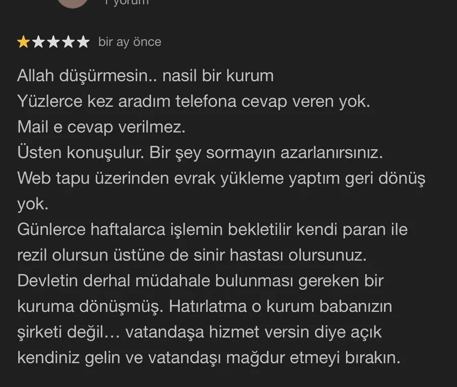 İnternet üzerinde paylaşılan onlarca yorumda vatandaşlar, telefonlara bakılmadığını, e-postalara yanıt verilmediğini, randevulu işlemlerin geciktiğini ve bazı personellerin vatandaşa kaba, azarlayıcı bir tutumla yaklaştığını belirtiyor.